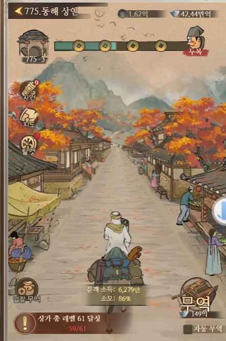 초반엔 골고루 올려두고, 일정 이상 늘리는데 드는 은화가 높아질 경우 의관처럼 점원 수를 쉽게 늘릴 수 있는 상가를 올리는 게 효율이 더 좋은 느낌이었다.