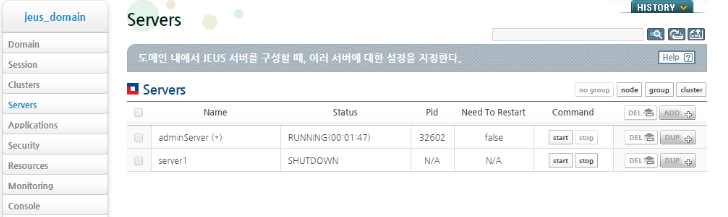 JEUS6 이상인 경우, JEUS Webadmin 을 통한 관리가 가능합니다.