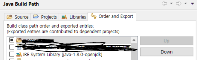 Properties > Java Build Path > Order and Export 확인