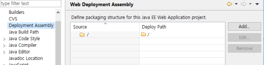 deploy-path , source-path 확인 및 property context-root , java-output-path 등 설정 값 확인