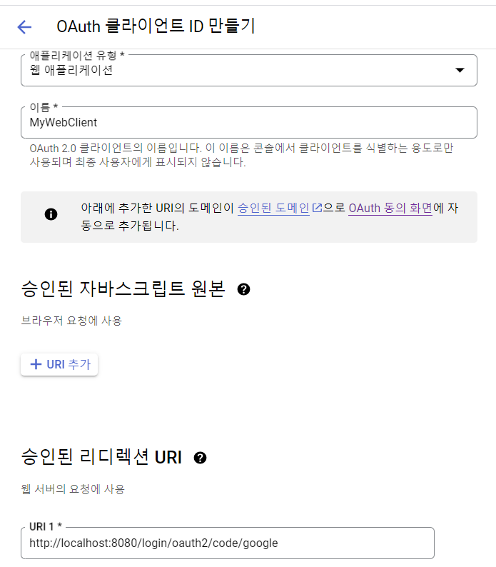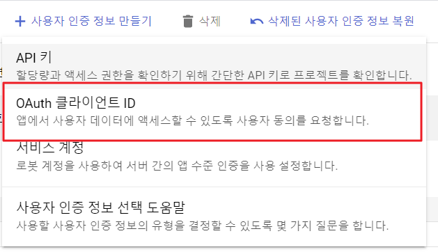 Oauth 클라이언트 ID 선택
