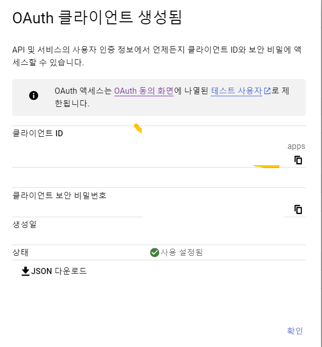 클라이언트 ID, 클라이언트 보안 비밀번호는 별도로 저장해두기